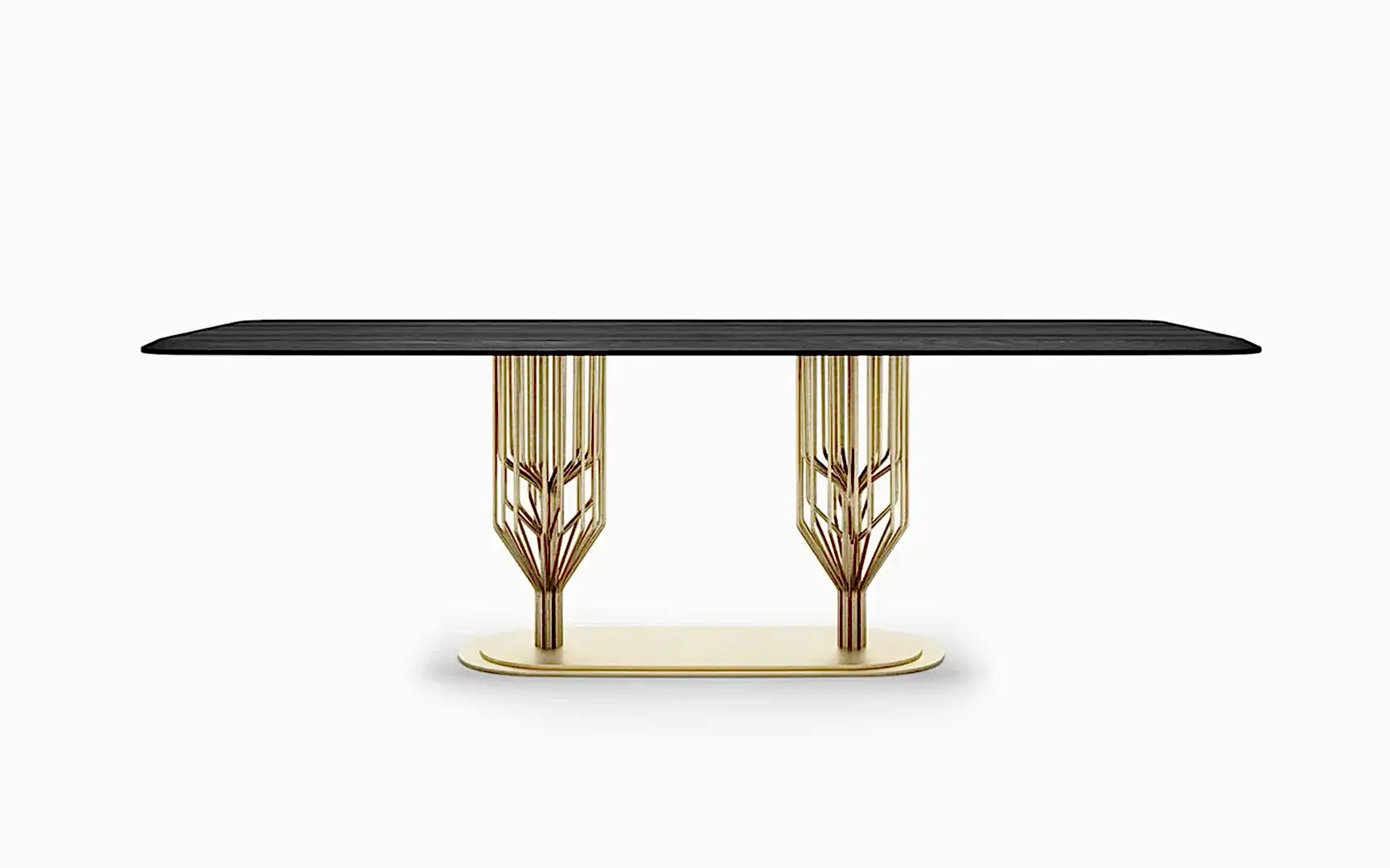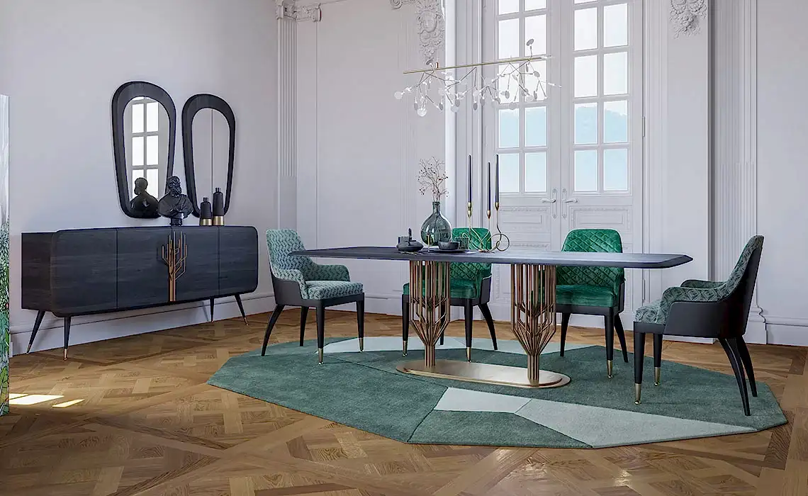 Ağacın dallarında yükselen bir stil ikonu... Meşe masifi, koyu tonlarla buluşturan Bug Masa, kumlama yöntemi sayesinde tüm doğallığını korurken, ağaç figürünü resmeden pirinç metal ayaklarıyla bir sanat eserine dönüşüyor.