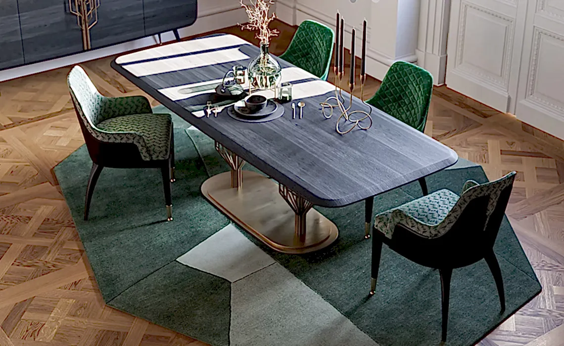 Fütürüstik bir stil anlayışını antik çağın kült unsuru ağaç detayıyla birleştiren Bug Yemek Odası, dünü bugünde buluşturan güçlü bir mozaik yaratıyor.