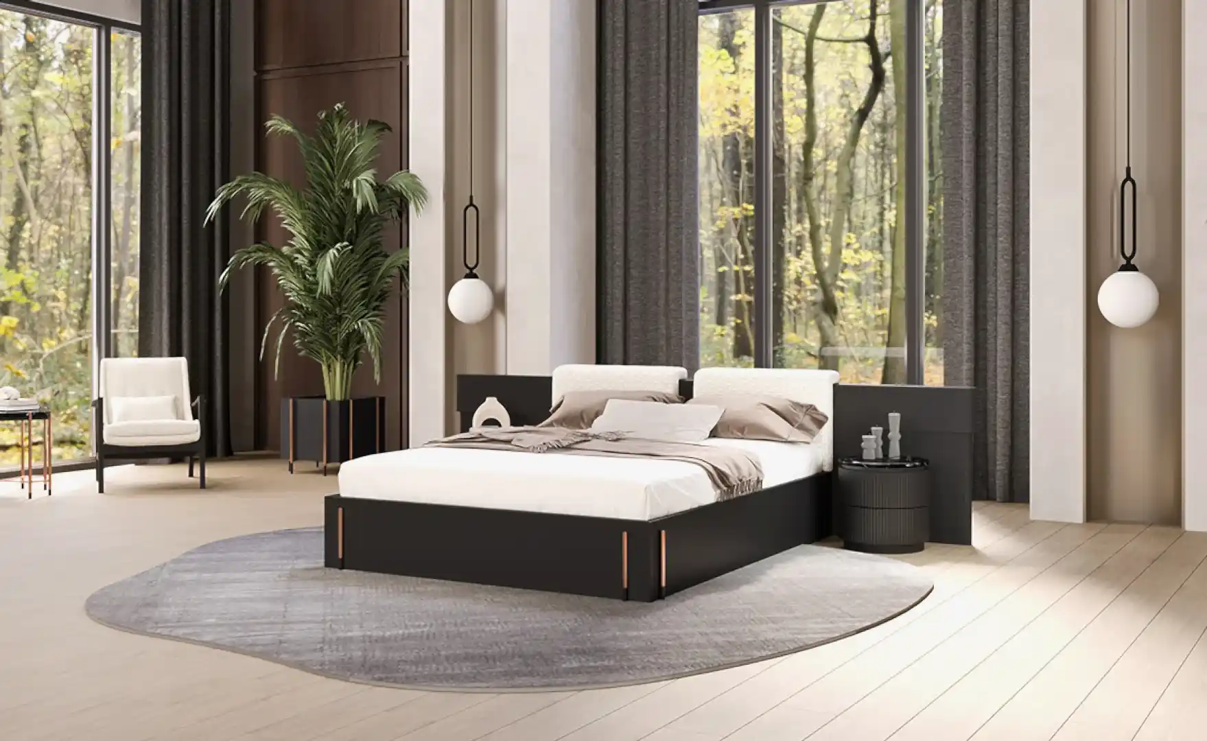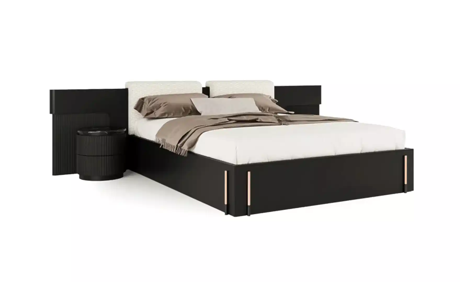 Dali Yatak Odası, çarpıcı tasarımının yanı sıra sağladığı konfor hissi ile de dikkat çekiyor. Modernizmi şıklıkla buluşturan etkileyici yatak başlığı, keskin çizgilerle karakter kazanıyor. Zarif detayları tamamlayan yüksek ayaklar, rose metal rengiyle bütünsel bir estetik sunuyor.