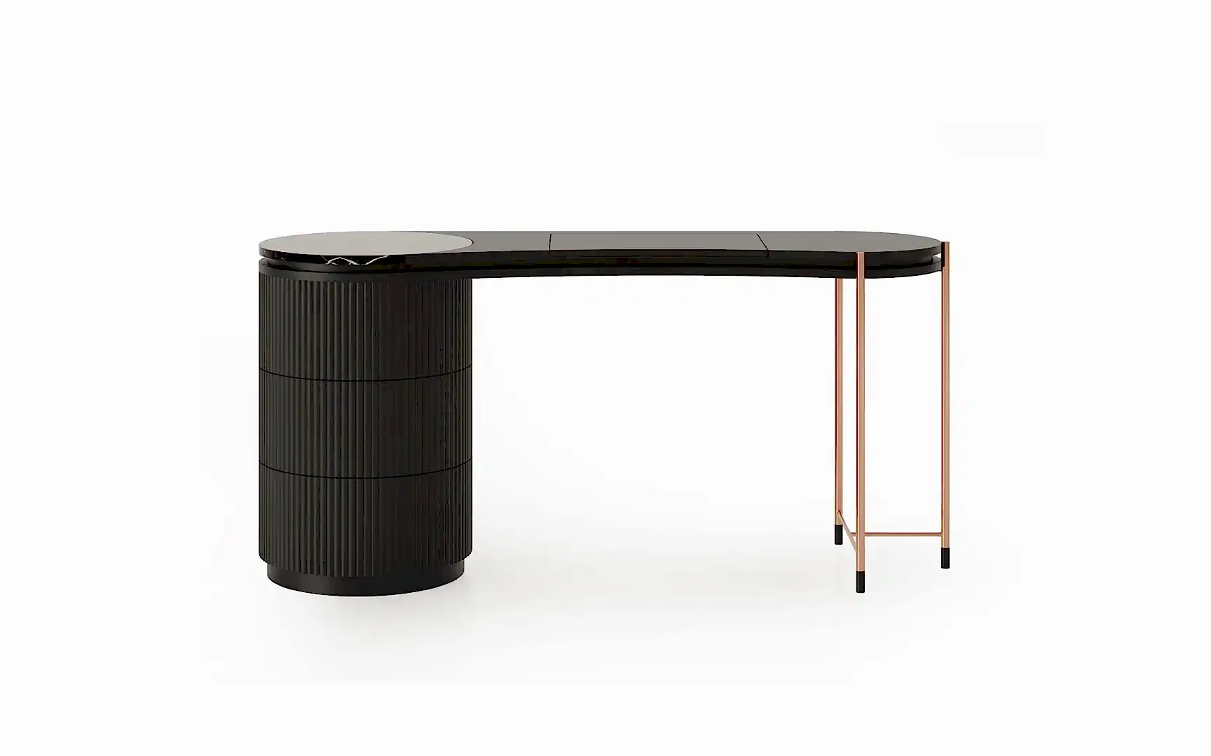 Yüksek ayak formunda bulunan, rose metal detaylar ile yatak odanızın havasını değiştirecek Dali Makyaj Masası, şık mermer detayı ile büyüleyici bir bütünlük sağlıyor. Göz yormayan yalın ama gösterişli tavrı, işlevselliği vurgulayan takılık bölmesi ile sizi kendisine hayran bırakacak…