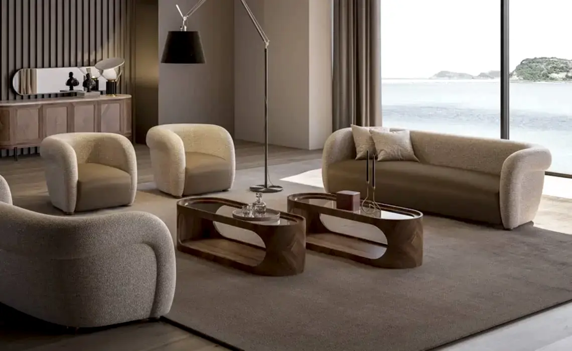 Gauss Oturma Odası, oval kol tasarımı ve soft duruşuyla yaşam alanınıza modern bir yorum kazandırıyor.