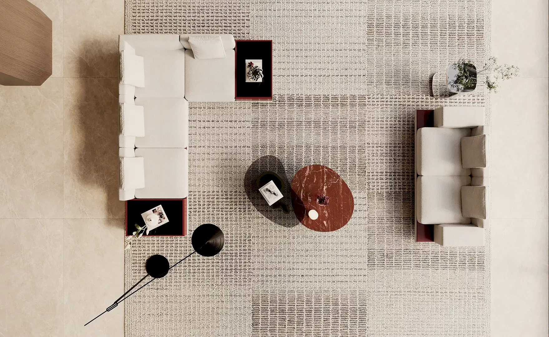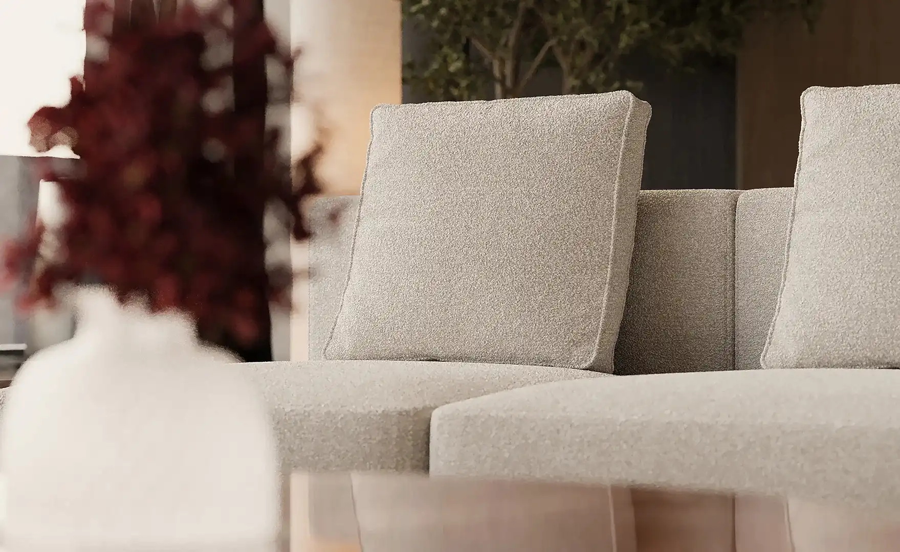 Granata köşe koltuk, çağdaş tasarım diliyle yaşam alanlarına güçlü bir duruş kazandırıyor.