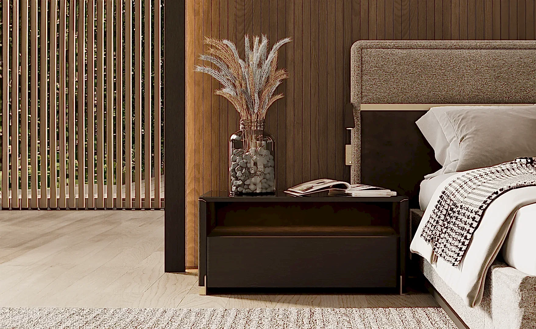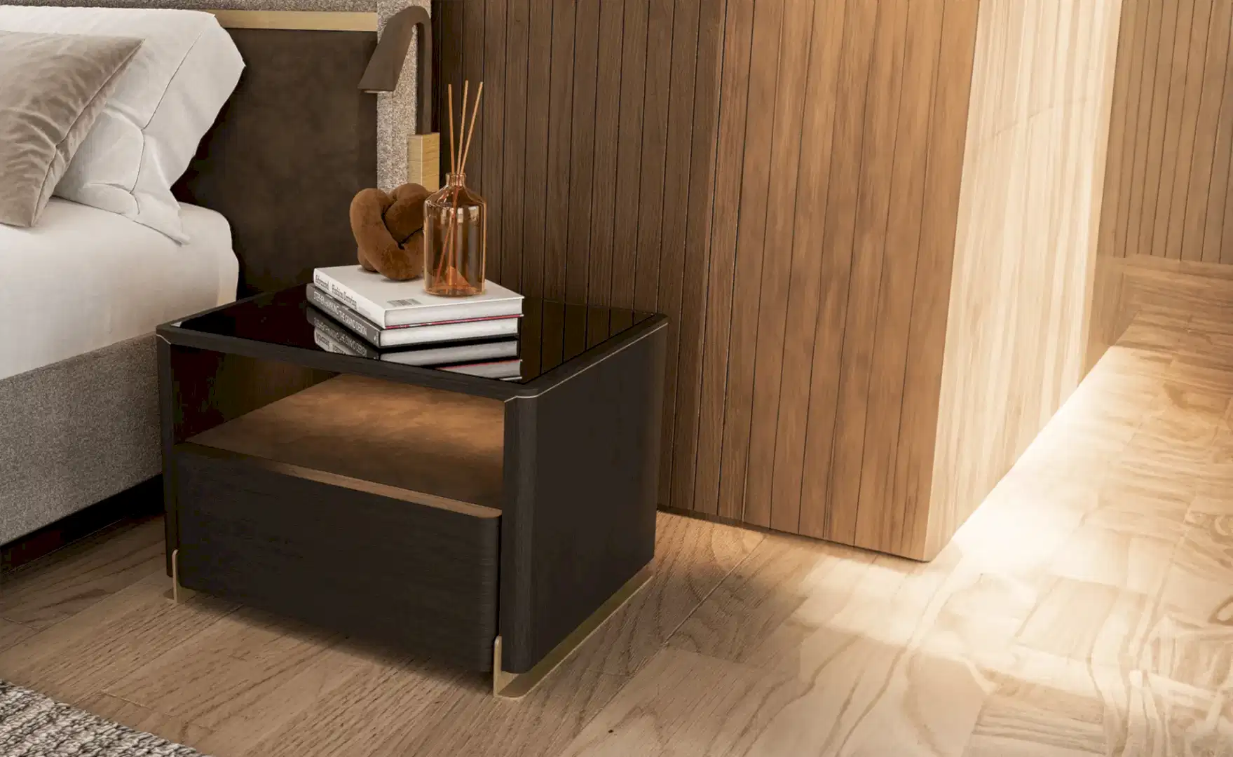 Modern çizgisi ve şık tasarımıyla Veluxe karyola, yatak odanıza doğal ve güçlü bir kimlik kazandıracak.